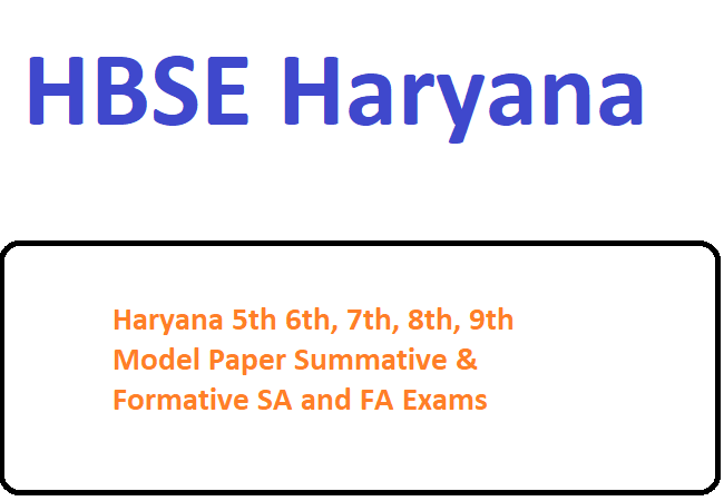 - Haryana Board Class 9th Sample Papers 2025, Haryana Class 9th Model Test Paper 2025, HBSE 9th Model Question Papers and SA FA Exams Paper